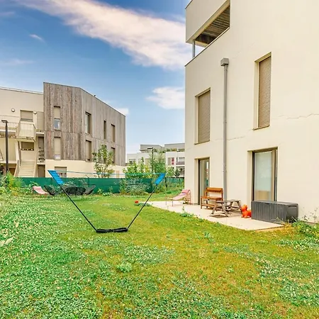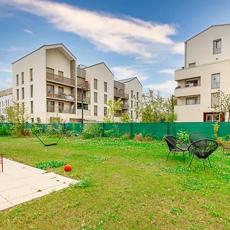 Charmant T4, Jardin, Calme apartment includes an equipped kitchen where guests can cook and enjoy homemade meals. The accommodation is just steps from Bois de sy bus station.